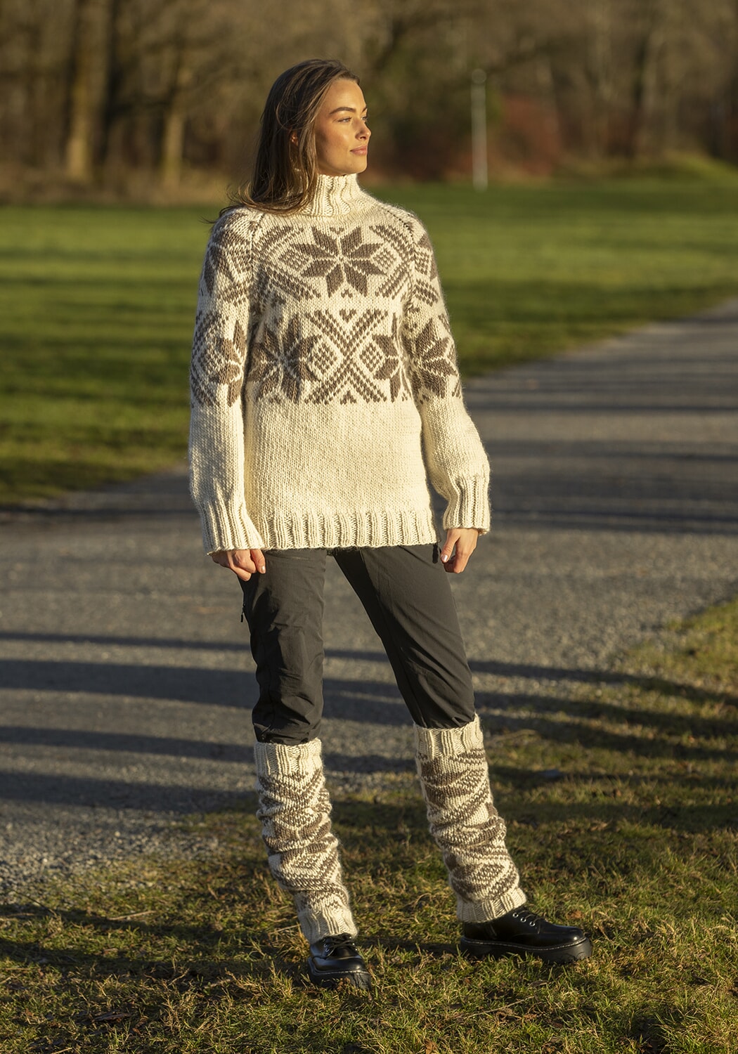 Strikkefasthet: 12 m glattstrikk i bredden på pinne nr 7 eller 8 måler ca 10 cm. Husk at strikkefastheten må holdes hvis resultatet skal bli vellykket.