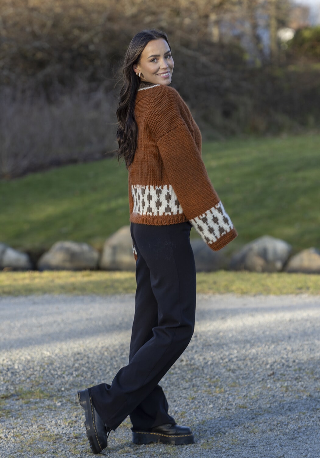 Strikkefasthet: 12 m glattstrikk i bredden på pinne nr 7 eller 8 måler ca 10 cm. Husk at strikkefastheten må holdes hvis resultatet skal bli vellykket.
