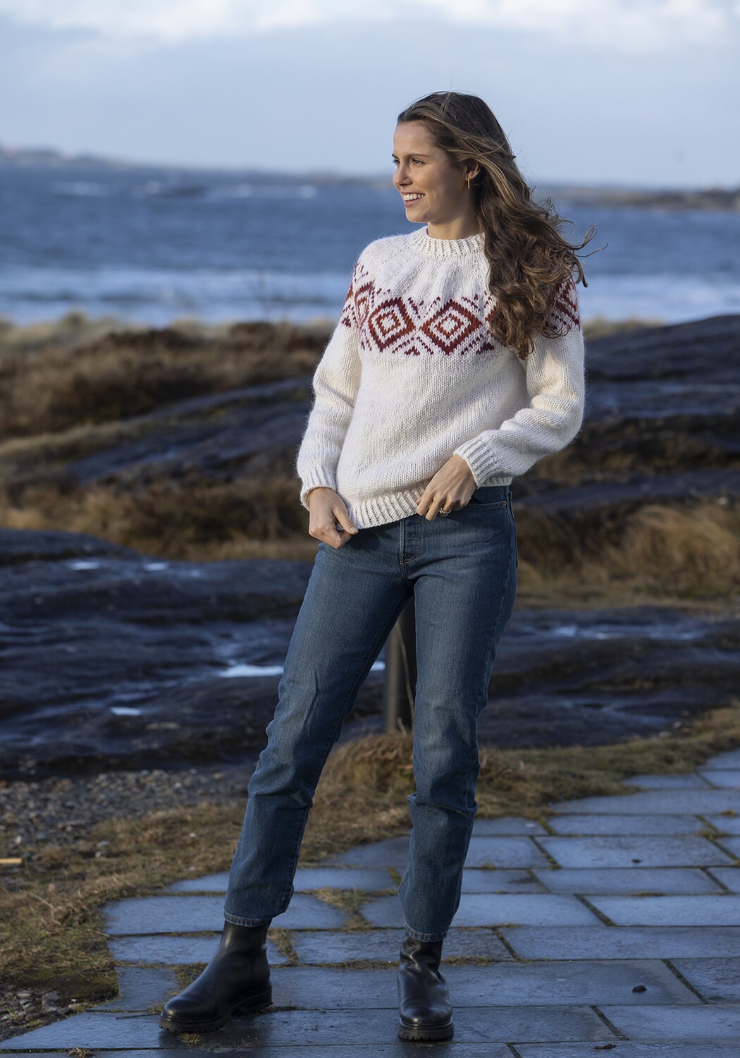 Strikkefasthet: 14 m glattstrikk i bredden på pinne nr 6 måler ca 10 cm. Husk at strikkefastheten må holdes hvis resultatet skal bli vellykket.