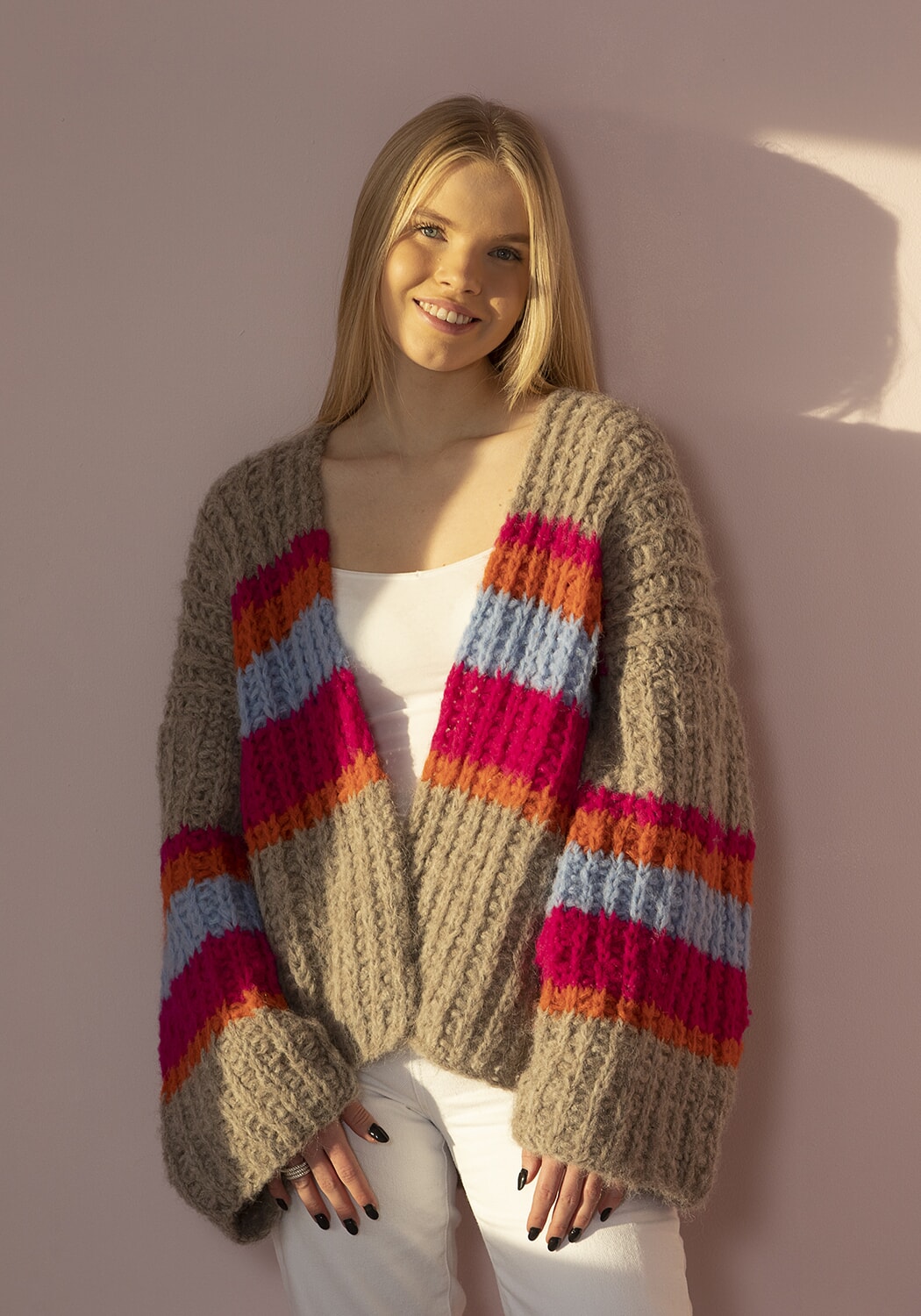 Hele plagget strikkes med dobbel tråd.