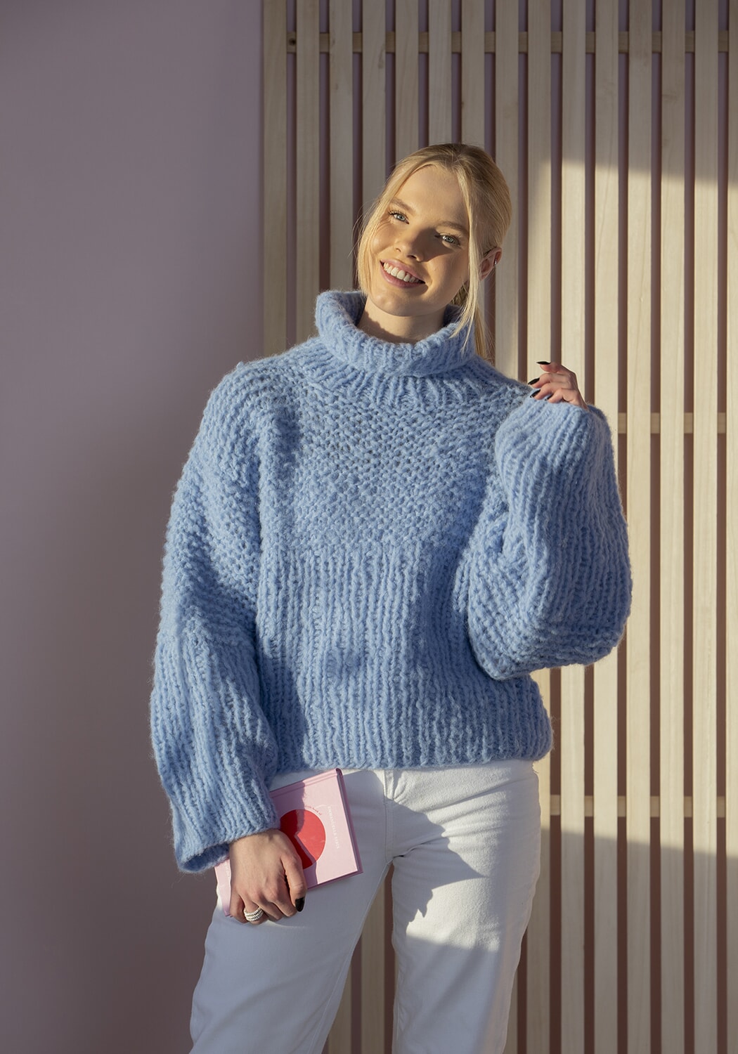 Hele plagget strikkes med dobbel tråd.