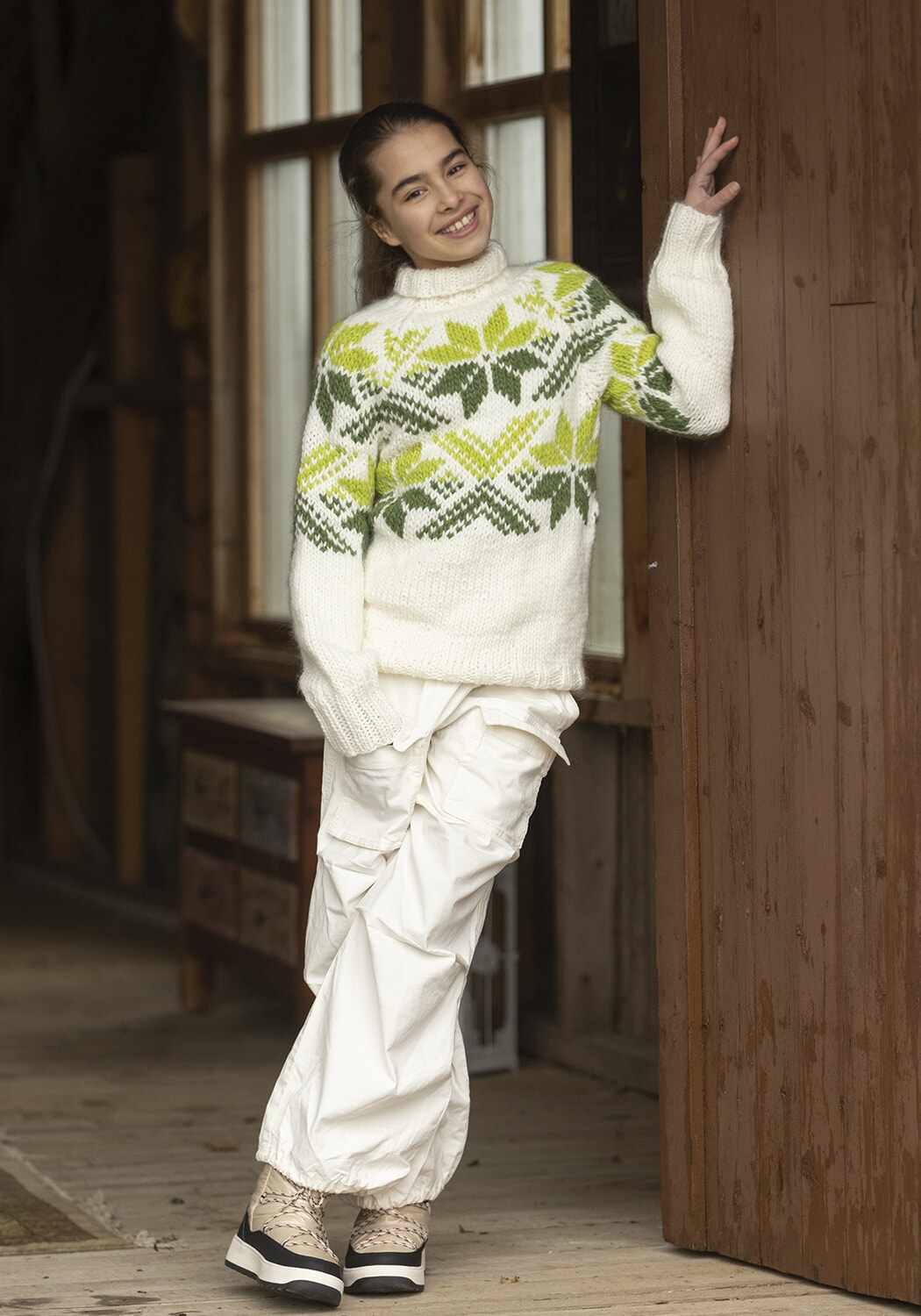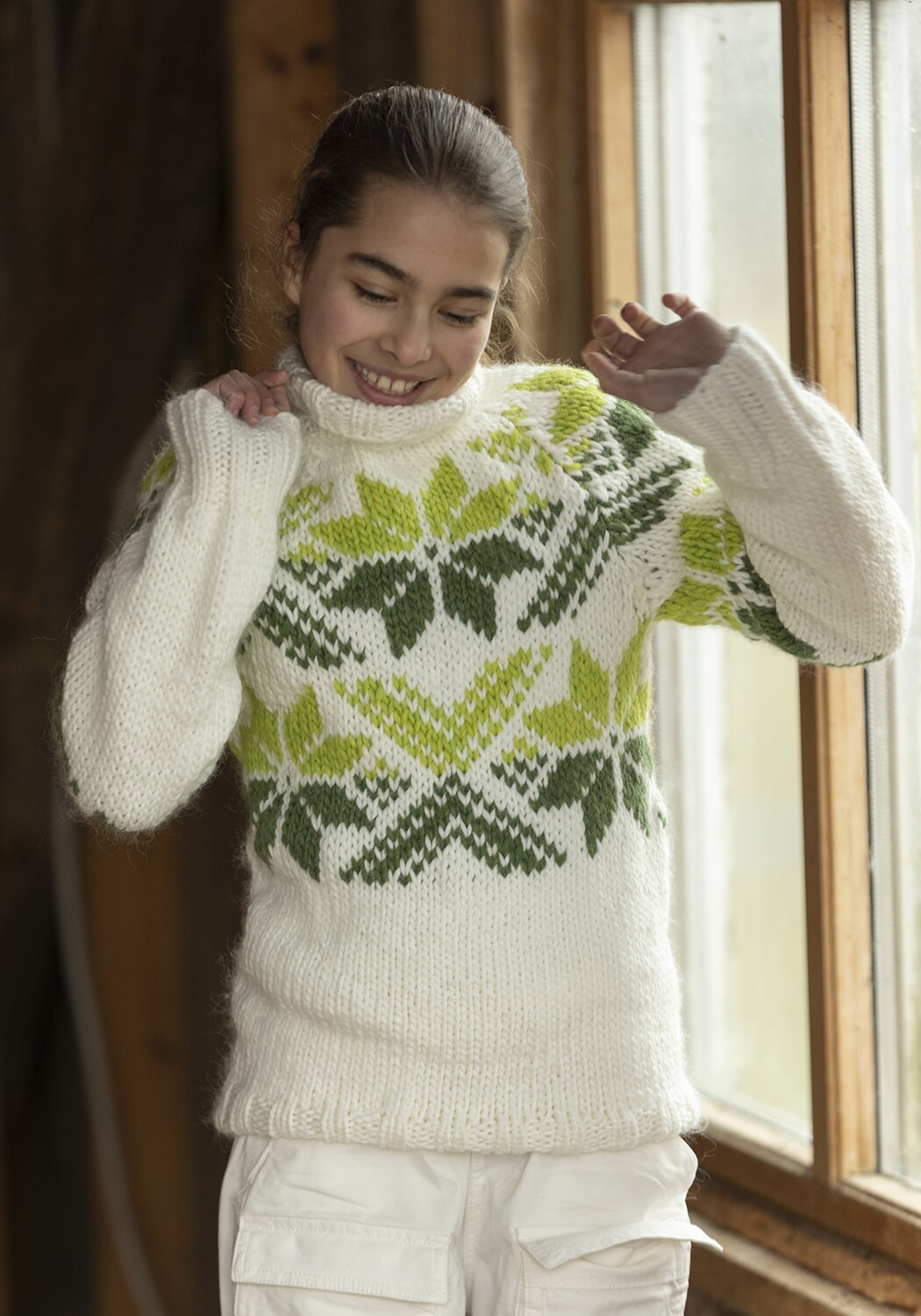 Strikkefasthet: 12 m glattstrikk i bredden på pinne nr 7 eller 8 måler ca 10 cm. Husk at strikkefastheten må holdes hvis resultatet skal bli vellykket.
