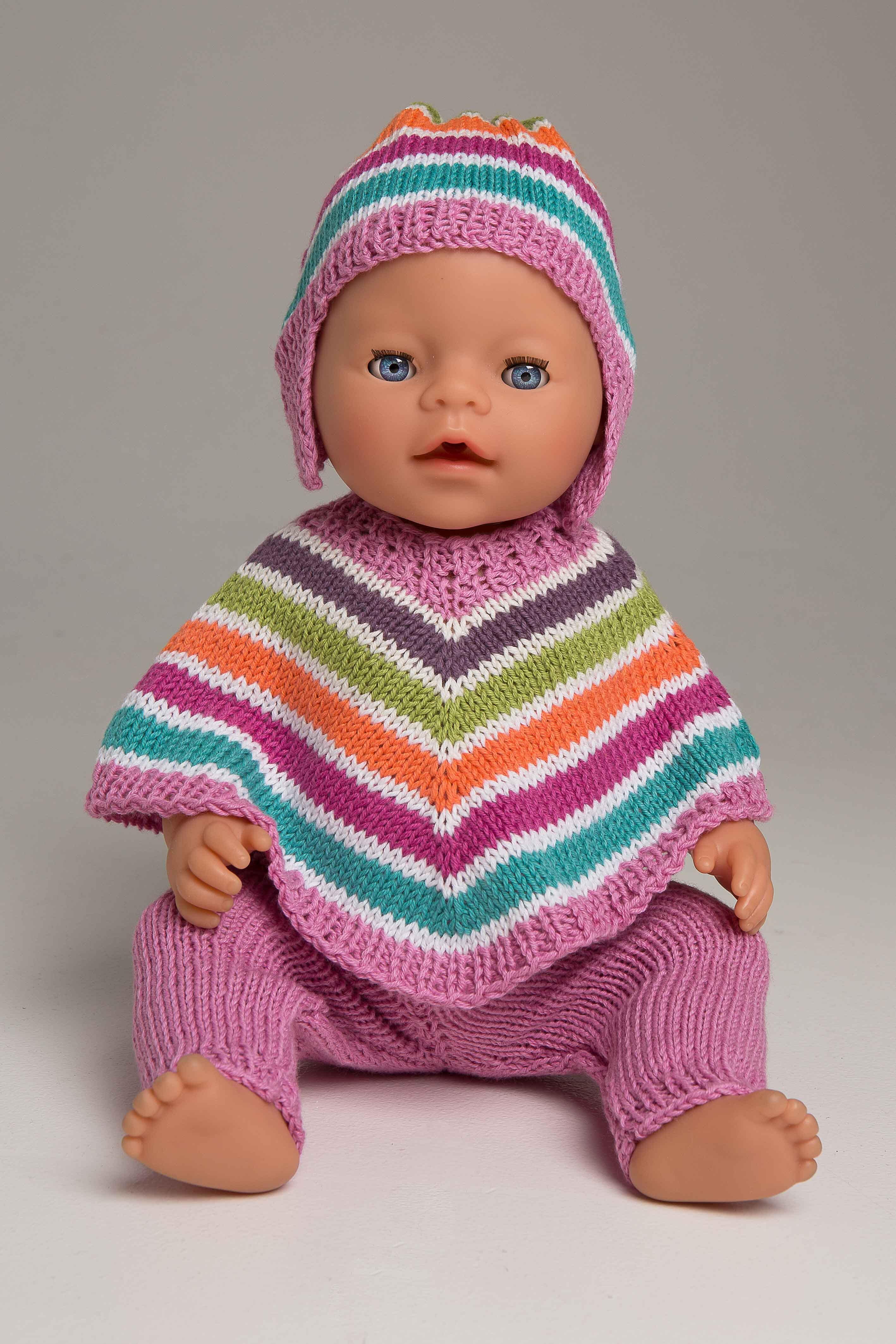 Viking Bjørk Ponsho, bukse og lue 1303-4 Størrelse Babyborn Hel lengde , ponsjo: 14 cm Benlengde, bukse: 11 cm GARNALTERNATIV: Viking Bjørk ( 90% bomull, 10% merino ull), Viking Alpaca Silk ( 50% alpakka , 50% silke), nøster à 50g. Rosa nr 564 - 1 nøste Hvit nr 500 - 1 nøste Mint grønn nr 527 - 1 nøste Cerise nr 563 - 1 nøste Orange nr 551 - 1 nøste Grønn nr 537 - 1 nøste Lilla nr 569 - 1 nøste Pinner og tilbehør: Rundpinne og strømpepinner nr 3 + 1 hekte og en elastikk. Strikkefasthet: 25 m glattstrikk i bredden på p nr 3 måler ca 10cm. Husk at strikkefastheten må holdes hvis resultatet skal bli vellykket.