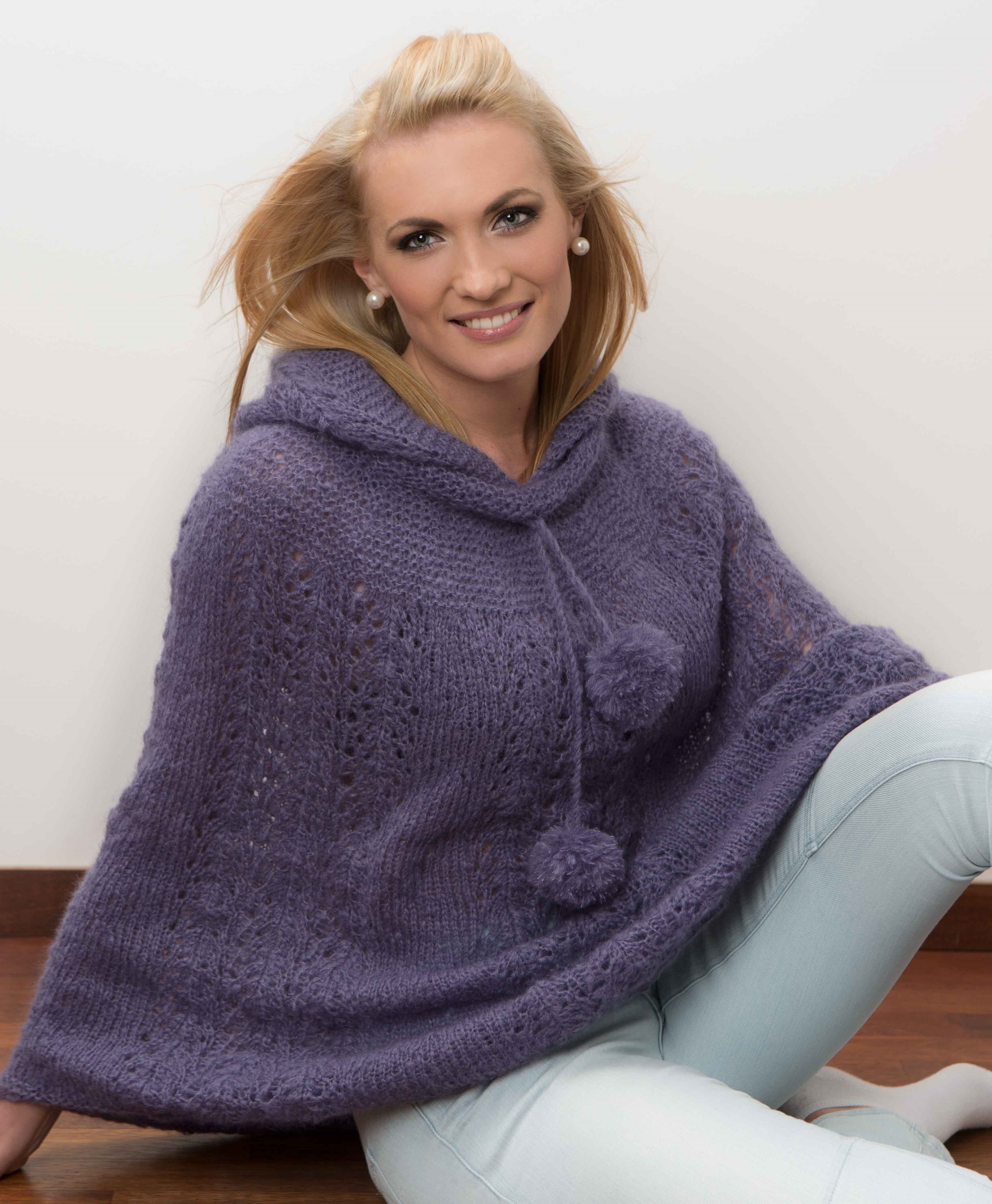 Viking Kid Mohair Ponsho 1304-13 Størrelse Dame Vidde nederst: 148 cm Hel lengde midt foran: 70 cm GARNALTERNATIV: Viking Kid Mohair ( 70% kid mohair, 18% merino ull, 12% nylon ) nøster à 50 gr. Viking Eco Alpaca (100% alpakka) à 100 gr hespel. Viking Odin ( 100% ull, superwash), à 100 gr nøste. Mørk lilla nr 968: 5 nøster Veiledende pinner: Rundpinne nr 4 ½. Strikkefasthet: 18 masker glattstrikk på pinne nr 4 ½ måler ca 10cm. Husk at strikkefastheten må holdes hvis resultatet skal bli vellykket.