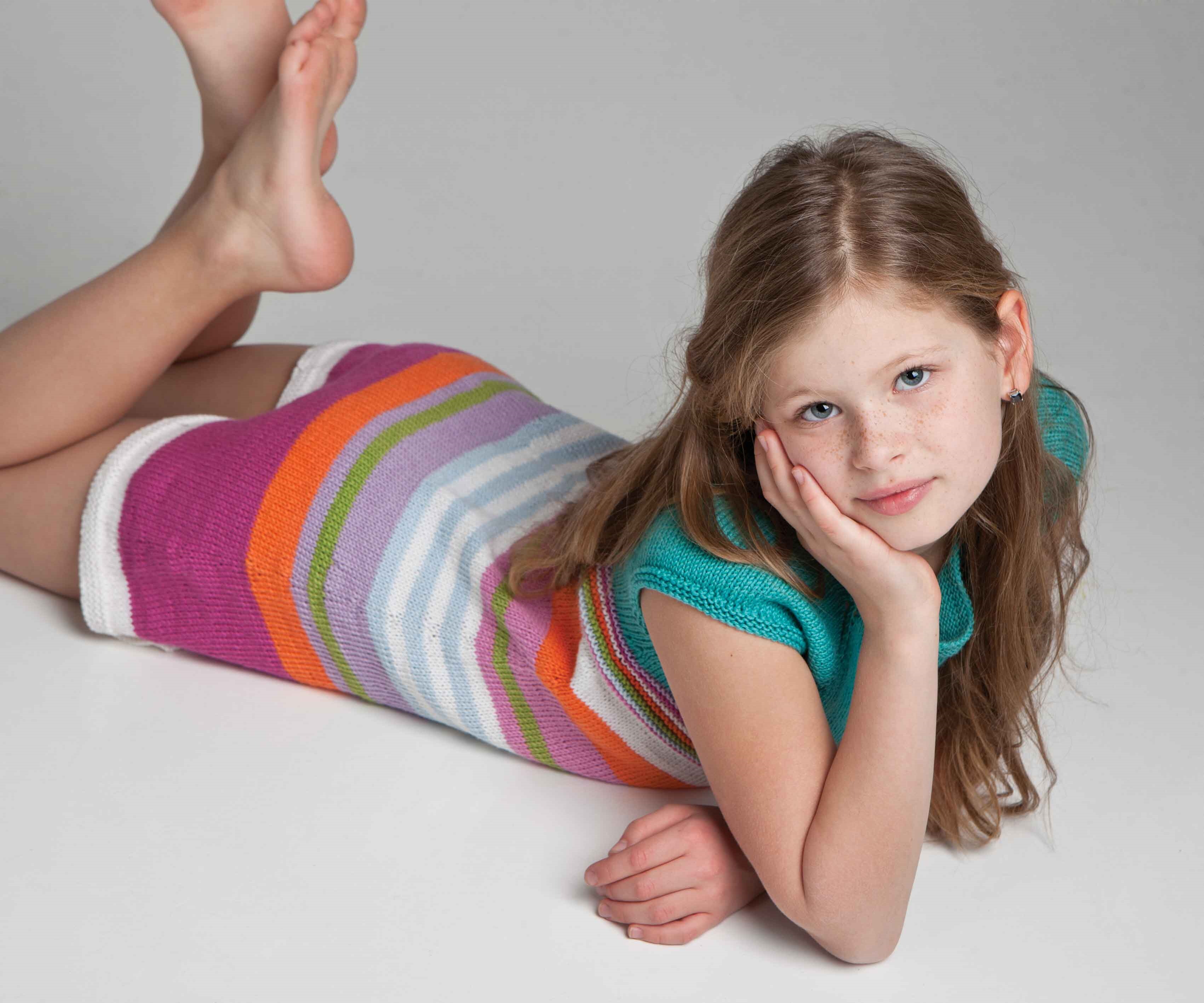 Viking Bjørk Tunika 1203-3 Størrelser: 2- 4- 6- 8- 10 år Overvidde: ca. 54- 59- 65- 70- 75 cm Hel lengde: ca. 50- 54- 58- 62- 65 cm GARNALTERNATIV: Viking Bjørk (90% bomull, 10% merino ull, superwash), Viking Alpaca Silk (50% alpakka, 50% silke), nøster à 50 g Hvitt nr 500: 1- 1- 1- 1- 1 nøste Mintgrønt nr 527: 1- 1- 1- 2- 2 nøste Cerise nr 563: 1- 1- 1- 1- 1 nøste Oransje nr 551: 1- 1- 1- 1- 1 nøste Rosa 564: 1- 1- 1- 1- 1 nøste Grønt nr 536: 1- 1- 1- 1- 1 nøste Lys lilla nr 567: 1- 1- 1- 1- 1 nøste Lys blått nr 520: 1- 1- 1- 1- 1 nøste Pinner og tilbehør: Strømpep og rundp nr 3. Strikkefasthet: 25 m glattstrikk i bredden på p nr 3 måler ca 10 cm. Husk at strikkefastheten må holdes hvis resultatet skal bli vellykket.
