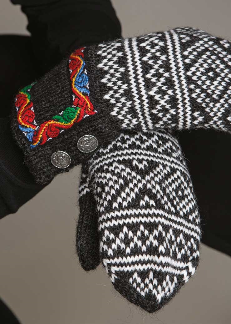 Viking Superwash Votter 1213-25 Størrelse Herre GARNALTERNATIV: Viking Superwash ( 100% ull, superwash ), Viking Alpaca Sport ( 30% alpakka, 40% merino ull, 30% nylon), Viking Sportsragg ( 60% ull, 20% nylon, 20% akryl), Viking Sportsgarn ( 100% ull), nøster à 50g. Koksgrått nr 117 ca 2 nøster Hvitt nr 100 ca 1 nøster Veiledende pinner : Strømpepinner nr 3 og 3 ½ . + setesdal bånd ca 1,5 meter + 4 tinnknapper Strikkefasthet: 23 m glattstrikk i bredden på pinne nr 3 ½ måler 10cm. Husk at strikkefastheten må holdes hvis resultatet skal bli vellykket.